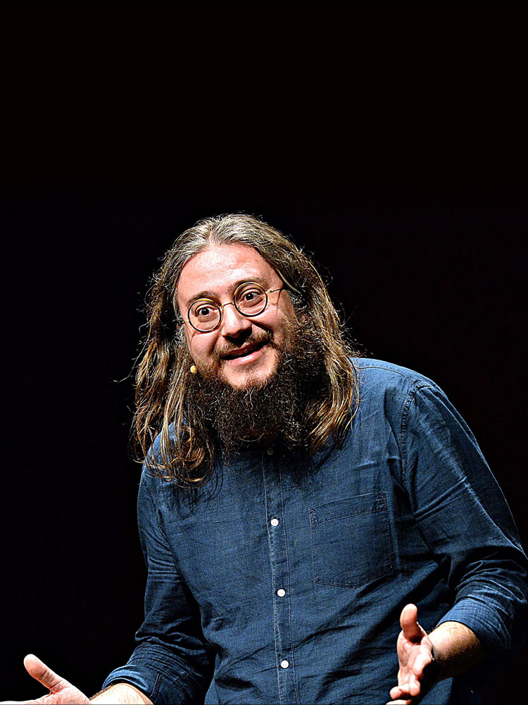 Roberto Mercadini è uno scrittore, autore teatrale, narratore, poeta e divulgatore italiano, nato a Cesena nel 1978. Dopo aver lavorato come ingegnere informatico, ha abbandonato la carriera per dedicarsi alla poesia e al teatro, definendosi "poeta parlante". È autore di monologhi, libri di successo come Storia perfetta dell'errore e Bomba atomica (vincitore del premio Robinson) e uno dei volti più noti della divulgazione culturale, con un canale YouTube e la partecipazione a programmi TV come Splendida cornice.